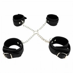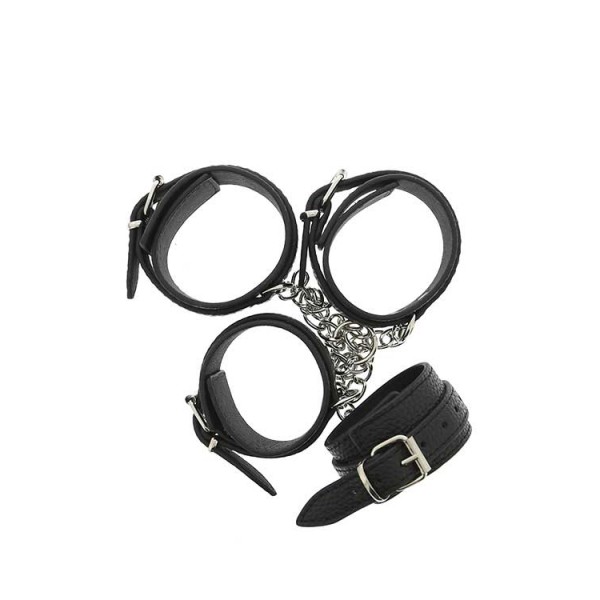 Set 4 catuse din imitatie piele, conectate cu lant metalic.