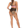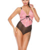 Un body sexy si incitant, confectionat din dantela roz cu elemente florale si tul.