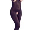 Catsuit negruĀ opac cu cagula si decupaje in zona sanilor si in zona intima.