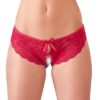Chilot tanga din material elastic, cu deschiderea in zona intima decorata cu doua siraguri de perle albe.