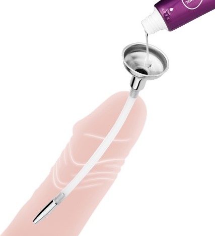 Dilatator uretral prevazut cu o palnie si furtun prin care poti turna apa, lubrifiant sau orIcare alt lichid in uretra partenertului.