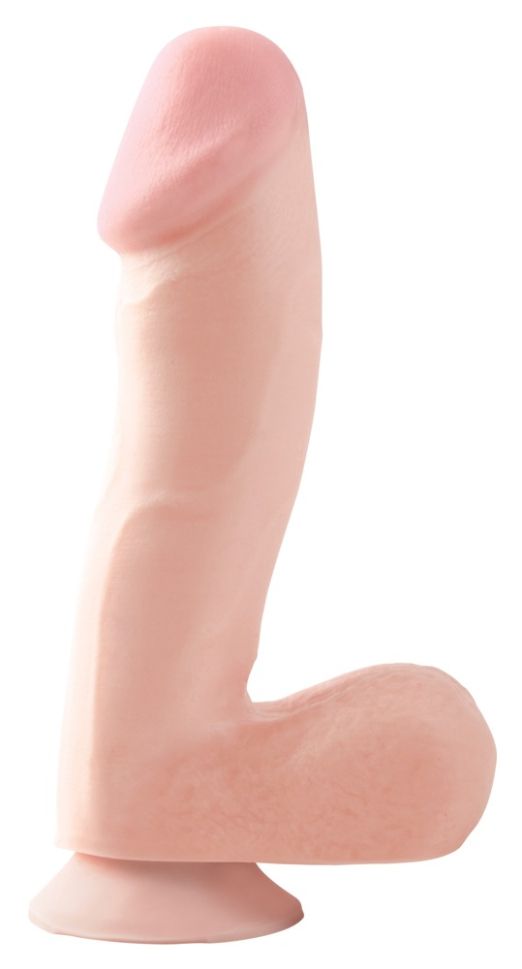 Dildo realist cu gland, vene și testicule pronunțate.