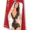 Body provocator din material cu aspect glossy si dantela elastica cu motive florale.