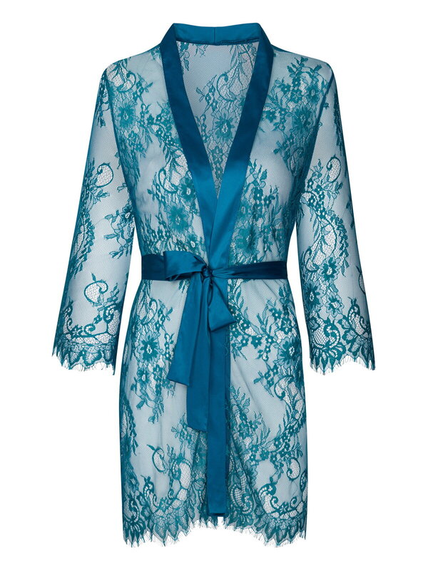 Un halat din dantela este sinonim cu feminitatea, care, acoperind corpul, atrage in acelasi timp privirea asupra acestuia.