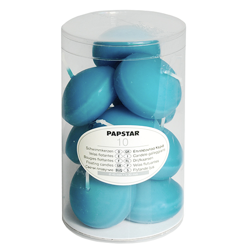 Lumanarile plutitoare turcoaz au un diametru de 4,5 cm, o inaltime de 3 cm si o greutate de aproximativ 27 de grame.