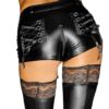 Pantaloni scurti din material wetlook de cea mai buna calitate, cu inchidere prin capse si fermor.