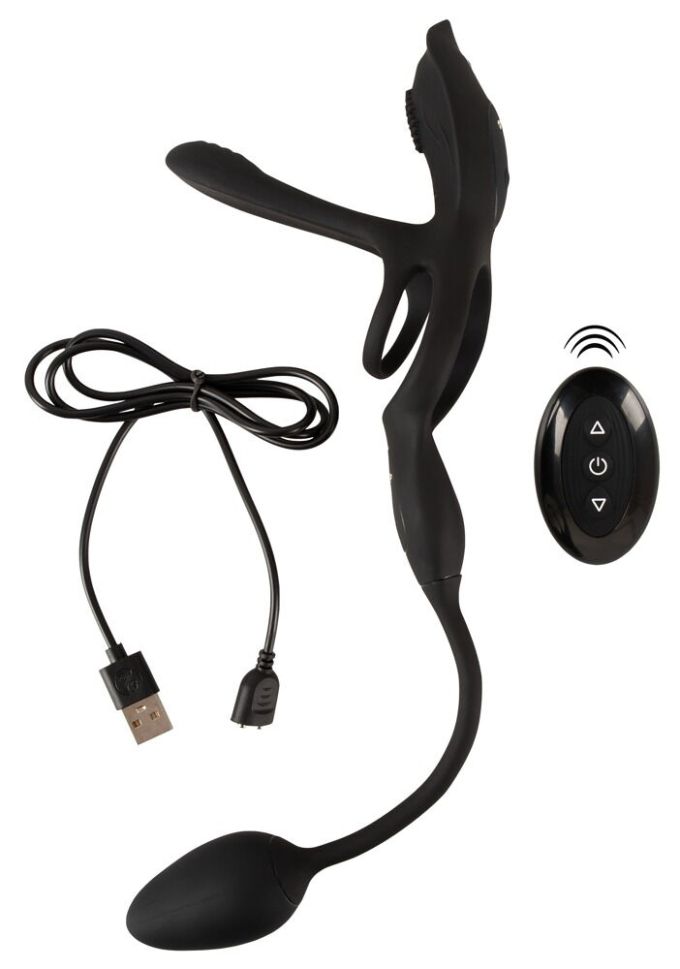 Nu mai puțin de 5 jucării sunt combinate în acest multi-talent: inel pentru penis și bila, vibrator pentru cuplu, vibrator clitoridian și plug vibrator.