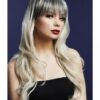 blonda, coafura cu parul lung, breton si varfuri usor intoarse.
