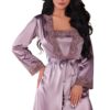 Set sexy din material satinat, compus din chemise, halat si chilot.