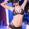 Set sexy din dantela. Setul este compus din top, chilot brazilian, masca si manusi.