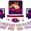 Include: 36 de cărți de viză: 18 pentru el și 18 pentru ea, 2 pașapoarte, o cravată de mătase, o lumânare, o filare, 2 zaruri personalizate și reguli de joc.