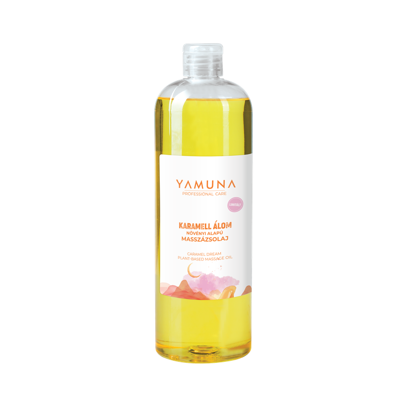 Formula uleiului de masaj pe bază de plante Caramel Dream, îmbogățită cu vitamina E, ajută la catifelarea pielii în timpul masajului.